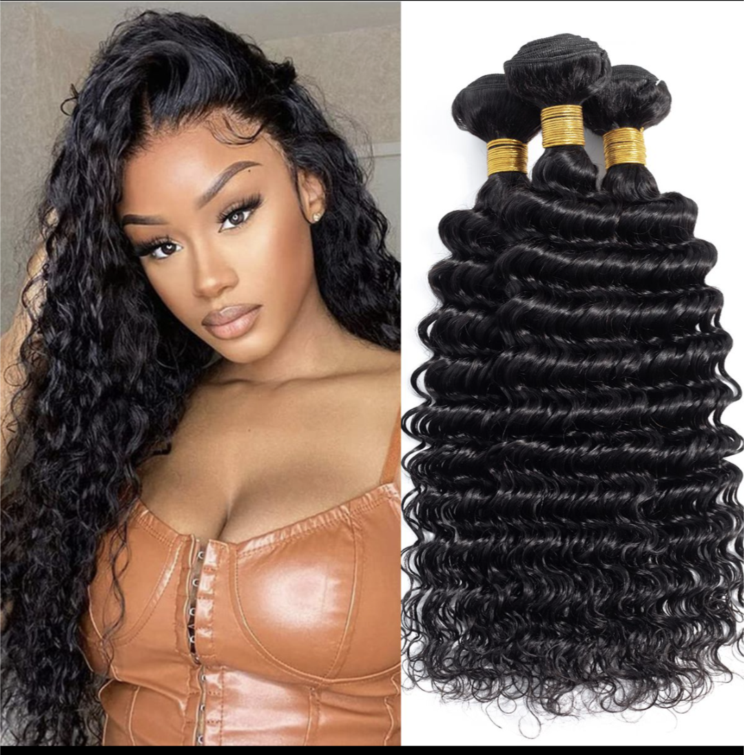 These luxury deep wave hair bundles in a natural color 1b are made from high quality premium grade virgin Remy hair that is soft and silky. Hair cuticles are aligned in one direction protecting it from shedding. It feels natural and soft and can withstand the wear and tear of daily styling making it an ideal choice for a long-lasting style. Ideally finger detangle to prevent frizz or brush with a detangling brush. Curls can be enhanced using small sized curling benders or rods. Curls retain its structure through the washing and coloring process but may slightly loose their waves which can still be enhanced and retained using a diffuser blow dryer. Please read our hair care guidelines to get the most out of your hair bundles.