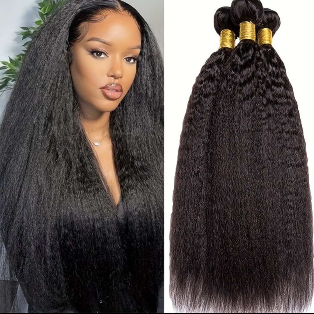 These luxury kinky straight hair bundles are made from high quality premium grade virgin Remy hair that is soft and silky. Hair cuticles are aligned in one direction protecting it from shedding. It feels natural and soft and looks like natural hair that has been blow dried so can easily blend in with your own natural hair if opting for a leave out. Create stunning versatile looks with ease and confidence. Can be straightened or curled with heat straighteners or curling wands. Please read our hair care guidelines to get the most out of your hair bundles.
